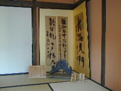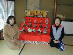 |  | 玄関から控えの間を西に進んで座敷に入りました。この様式は格式を重んじた構成だそうです。 接客のための座敷にはお雛様が飾ってありました。龍野では、お雛様は旧暦で祝います。 |