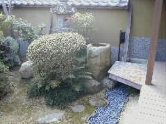 | お座敷の廊下とお手水です。その右奥には厠があります。 |  |