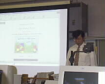 ホームページを作る勉強をしたいと公開講座に申し込まれた方が席に着かれました。2時、大岩先生の挨拶でいよいよ第一回目の講座が始まりました。 この公開講座は、大分大学と附属中学と共同で作るもので、第一回目はホームページを持つとどんな世界が開けるのかな、ということで、私の話し。そして次回からは実際にパソコンを使ってホームページを作る勉強が始まります。 |