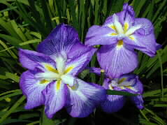 | 本当に菖蒲の花がきれいです。そしてとても大きいです。右の白い花の中心には蜂がいます。出たり入ったりして蜜を吸っています。おいしいんでしょうね。 | |