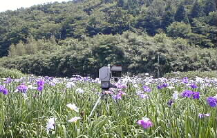 | 見つけました。どうして毎朝、居ながらにして神楽女湖の菖蒲の様子を見ることが出来るのか。わかりました。このカメラが写してくれているんですね。 |  |