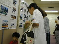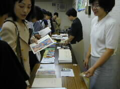 | お話、質問の時間の後は、生徒さんの作品を見たり、また、学園の資料を求めたりする時間でした。大分友の会員もお手伝いをしています。 |  |