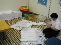 On the children corner, a new sheet is being prepared for seal affix by the guests. Yesterday, much more seals were attached on the sheet than we had anticipated. New sheet will be needed today. |
