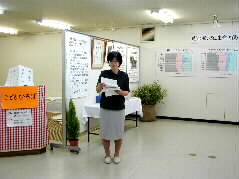 | At 9:00 a.m., Ms. Matoba, general leader of Oita Branch, made a few words with joke, "I am sorry to say that we have just one day for the Exhibition today."
