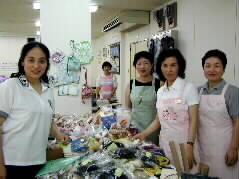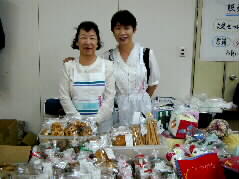 | Supporters from Beppu Branch, from left Kiyohara and Matsuoka. They brought-in a lot of tasty bean cookies. They sold very well. | ![]() |