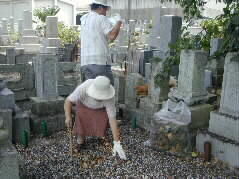| 8月12日:今は姫路市に編入されている林田町にあるお墓に行きました。皆でお墓の草取りなど掃除をしてお参りしました。 |  |