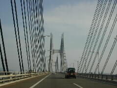 |    初盆のお経も上げてお参りが済んだので、高知に帰る姉夫婦の車に便乗して私も久しぶりに高知へ行くことにしました。 お盆の帰省ラッシュにあったり、トンネル内では、玉突き事故を見たりしましたが、無事に瀬戸大橋を渡っています。 | |