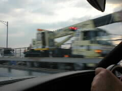 |    そしてまた、瀬戸大橋に乗りましたら、対抗車線で、交通事故があり、クレーン車がきて対処中で通行止めになっていました。 私達の走っている路線でなくて良かったね、と思いましたが、反対車線は長い渋滞となり大変な様子でした。 | |
