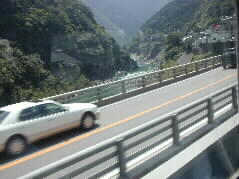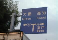 |  | 瀬戸大橋を渡りきって、いよいよ四国の高速を走ります。室戸岬への分岐点です。私達は勿論、高知めざして走ります。 高知の手前、南国で高速を降りましたが、そこまでにトンネルが19本、あると書いてありました。5000m近いトンネルが1本、3000mのトンネル2本を含んでいます。 |