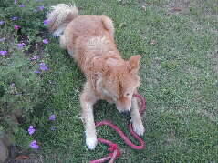 |    姉の家にはアンという犬がいて、龍野へも一緒に来ていました。 私にもすっかりなついてくれて側でおとなしく寝そべっています。 | |