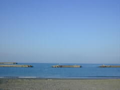 | 8月14日:朝、海まで散歩に行きました。青い青い海がどこまでも広がっています。 |  |