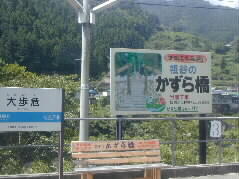 |    来る時には高速道路でしたが、今度はのんびり列車の旅です。 大歩危小歩危で名高い大歩危駅には、かずら橋の模型が置いてありました。 | |
