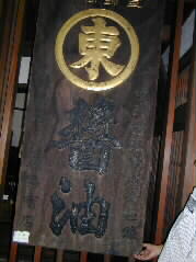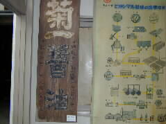 | 金箔もはげた永年に渡って使われた、菊一醤油の大きな看板です。 |  |