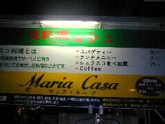 |  | 今夜は往く夏を惜しんで友人の宮瀬一家と一緒にシュラスコ料理を食べにやってきました。オーナーは20年近くも南米で暮していた内田さん、「マリア・カーサ」というお店です。 |