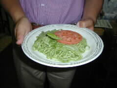 |  | 今夜のスパゲテイはほうれん草とバジルの緑ソース。とても色がきれいです。 |