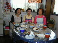 | さあ、出来上がりました。その前に記念写真です。午後から出席の二人がなかなか来られないので、先に「いただきます!」どれもとってもおいしかったです。 午後は、5人になり羽仁もと子著作集「よいことは必ず出来る」を読書してたくさん出来た筑前煮は今日のおみやげに持って帰りました。 |  |