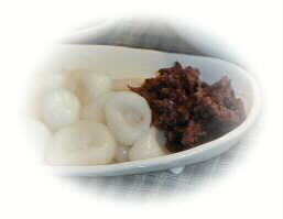 | 煎ったごまをすり鉢でよく擦ります。そこへ味噌と砂糖、みりんを入れてさらによくよく擦り混ぜます。その中へお豆腐を入れてまた擦ります。 (お豆腐は電子レンジで温めてから布巾でギュッと絞って使います) |  |