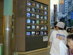 | 15日、シドニーでオリンピックが始まりました。今日はサッカーのリーグ予選の2回目、日本対スロバキア戦です。 大分のサッカーファンが中央町商店街セントポルタのマルチビジョン前で応援観戦をするというので、私も気になってやってきました。 |  |