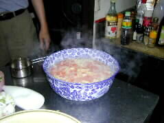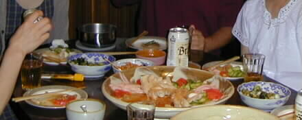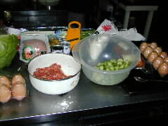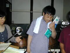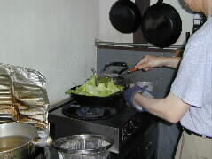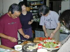 |  | 昔からいろいろとお料理を作りなれている加藤さんがまず、おいしい料理を作って下さった。 手さばき、火加減、調味のタイミングどれも見事です。 |