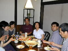 | 今夜の運営委員会に集まったメンバーです。ことこと屋のご主人も息子さんの恵太君も加わって賑やかです。そこへお客様、なんと湯布院映画祭の代表の伊藤さんです。楽しい輪に加わって下さいました。 | |