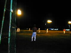 |  | 今から5年ほど前にパソコン通信COARAの有志で始めたテニスクラブ「ら・ポーム」いつのまにか活動停止してましたが、運動不足が気になる昨今、久しぶりに夜の舞鶴コートにやってきました。 野球場もナイター練習で賑わっています。 |