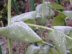 the pea. Today, we have the coldest morning in this winter, they say. The leaves of the pea are slightly covered with white frost. I wonder if the pea is OK. |