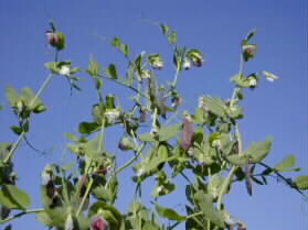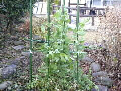 | We have a beautiful spring day today. The pea is growing healthy by stretching their tendrils high into the blue sky. | ![]() |