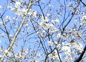 have a fine crispy day from the morning. I can enjoy the beautiful cherry blossoms from through the kitchen window. The cherry trees are in the kindergarten garden across the alley. |