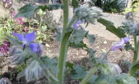 Beside the lemon tree, borages are growing from the seeds scattered on the ground last year. They have sharp prickles on the leaves, but the flowers have beautiful color and shapes. I love the herb very much. |