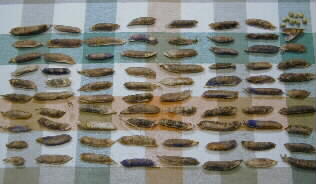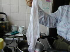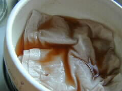 shells could be utilized for something. My imagination spreads, Tutankahmen Pharaoh's tomb to Egypt to Cleopatra to Emperor violet color. I made up my mind to try dying a piece of cloth by the violet shells. I boiled them in a pan. The boiling water turned blue in the end. |