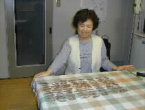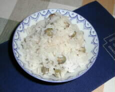| Now, today's main theme ended up with cooked rice. I mixed some amount of sticky rice, stock of kelp, Japanese sake, and salt and cooked them with an electric cooker. I left the cooked rice for a while after it was cooked. The color of the rice turned to slight pink. The color is, sorry to say, too faint to identify on this picture. | |
