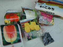 |  | 今日は我が家の庭に、チューリップの球根を植えました。大分友の会の共同購入で富山から取り寄せた球根です。 来春がとても楽しみです。 |