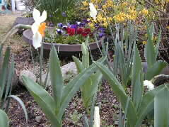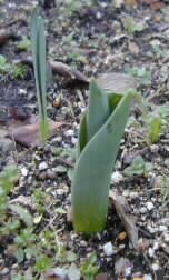|  | しばらく暖かい日が続きました。しかし、今朝はまた厳しい冷え込みです。こうして冬と春のせめぎ合いが今暫くは続くのでしょう。 チューリップもまた次の葉が伸びてきています。その向こうではラッパ水仙の芽も伸びてきています。 |
