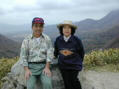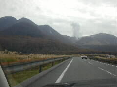 | 庄内町から九重町に出てきました。千町無田という所からやまなみハイウエイに出ました。 | やまなみハイウエイを走っていくと、正面に硫黄岳の噴煙が見えます。 |
