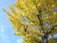 |  | 今年はいつまでも温かくなかなか冬が来そうにもありません。しかし、11月も下旬を迎え、やっと団地の街路樹のイチョウの木も黄色く色づきました。 |