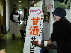 |  | また自治会婦人部の皆さんが甘酒をふるまっています。とってもおいしい昔の味がしました。 |