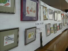 | 最近、友達も始めたという絵手紙の展示もありました。ハガキからはみ出す勢いの絵が気持ちを伝える絵手紙です。 |  |