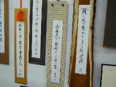 |  | 私達の俳句グループ「萌」も短冊にして展示をしました。 右から二つ目は私の俳句です。 「山茶花の白好ましと夫の言」 |