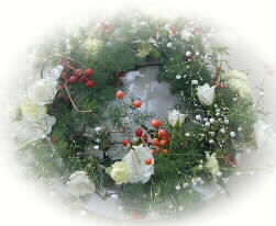 |  | やがて来るクリスマスを思わせるこんな生け花もありました。 私達の住んでいる団地にこんなに色々素適なものを作られる方々がいらっしゃるのだとうれしくなった秋の一日でした。 |