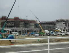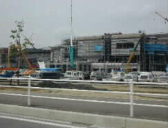 | 我が家からは国道210号線からホワイトロードで一本道、10分ほどで着きます。 今年の2月から工事が始まり、完成を楽しみにしていました。これは10月7日の工事中のわさだタウンです。 |  |