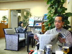 ![]() | From Haneda airport, we got on a Keikyu train to Narita airport. Until departure, we relaxed at a lounge of a credit card company by looking brochures and guidebooks on Australia. |