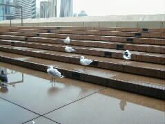 It was not doves but seagulls that flocked around me for picking the crumbs off my hands. |