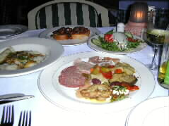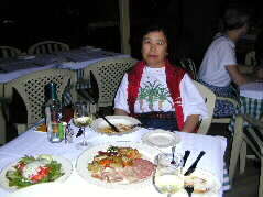 We entered one of such restaurants on the wharf for dinner. The Italian restaurant seated us on the terrace. We took Bulskettta, Razzania, salad, and aperitif. The main dishes were too much for us; I gave up in the end.