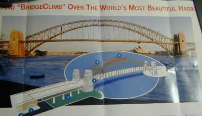 The pamphlet shows the Bridgeclimbing Office on the left in which walking lecture and training is oriented in detail. The tour starts from the Office and goes up to the highest point of the bridge, and returns through the other side of the trus. The tour requires as long as three hours.
