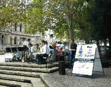 ![]() | An amateur band of a high school played not-so-beautiful-music on the stage provided at the corner of the square. Many tourists and local residents looked like enjoying the performance. |