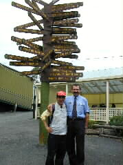 夫は、観光バスの運転手と記念写真、後ろの道しるべは、世界中の都市が書いてあります。東京もありました。ここから5000キロと書かれています。 | ![]() |
