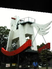 ![]() | この「トイ・ファクトリー」のご自慢は、この大きなロッキングホースです。高さは世界一の18.3mあります。中は階段があって登れるようになっています、早速登ってみました。 |