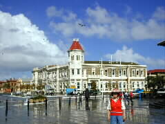 | Once thriving port is now making effort in redevelopment. The Court House still retains its beautiful Victorian architecture (above, right.) In Fishermen's' Wharf (right), we have a flea market today crowded with many local people and tourists. | ![]() |