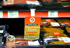 Packs of kangaroo meat on the shelf look like beef. Well, that lovely kangaroo was now in the pack, strange to see it. The meat of emu was also on the shelf.