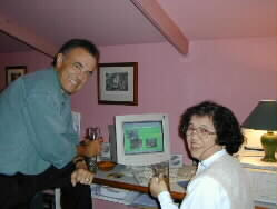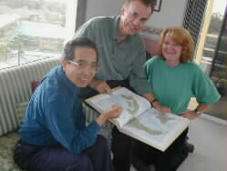 Mr. Rodney retired from engineering business early than scheduled and is now writing a book "Millennium of Grief." He had once appealed to a Japanese press in Hiroshima and got some responses from Japan. He showed us vast amount of his archives and data he has gathered until today. They closely work together to publish his book in the near future. We talked much about peace, translation, and other topics over an atlas of Japan indicating Hiroshima, Nagasaki, and Oita. | ![]() |